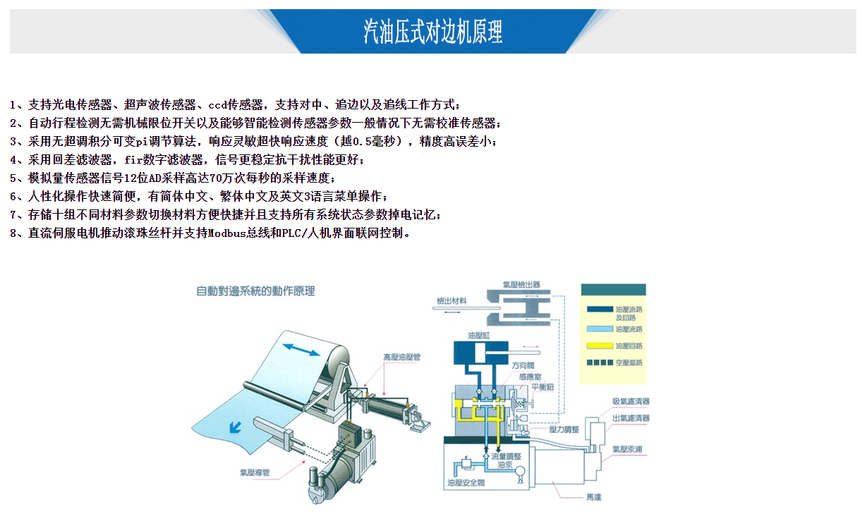 汽油壓式對邊機,金牌對邊機采用無超調積分可變PI調節算法,精度高,反應敏捷,誤差更??;模擬量傳感器信號12位AD采樣高達70萬次每秒的采樣速度。