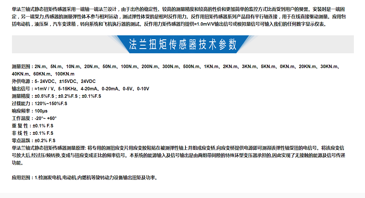 • 單法蘭軸式靜態扭矩傳感器