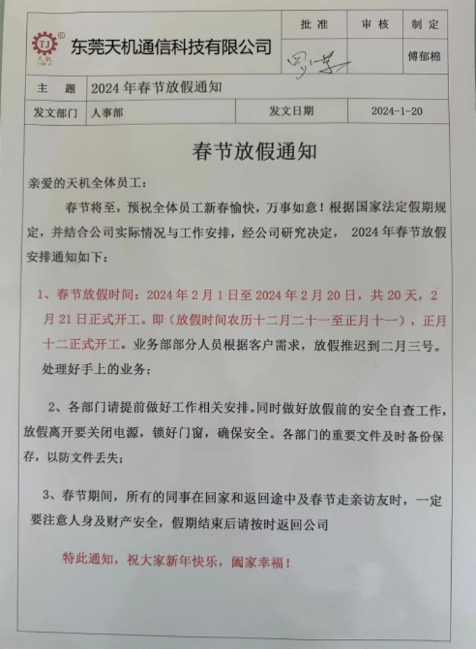 春節將至,預祝全體員工新春愉快,萬事如意!
